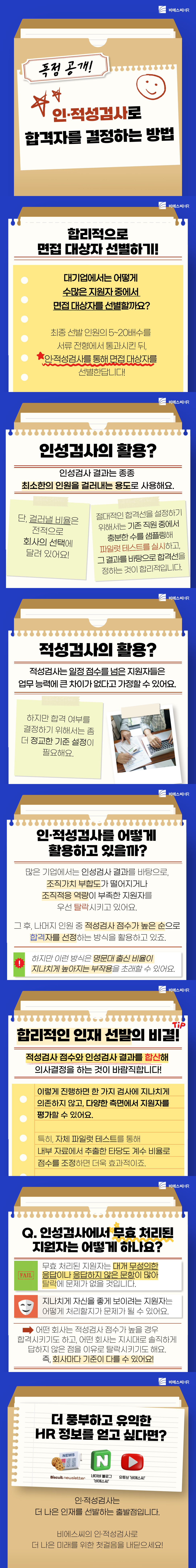 FORUM 블로그 인적성검사로 합격자를 결정하는 방법? 2026-01-22 129 수천 명이 몰리는 대기업 채용,그 많은 지원자를 ‘느낌’으로 고를 수는 없습니다. 그래서 대기업은인·적성검사로 합격자를 걸러냅니다. 대기업의 인적성검사 운영 비법이 궁금하다면? 지금 바로 카드뉴스에서 확인하세요.(글: 비에스씨 연구소) 목록보기