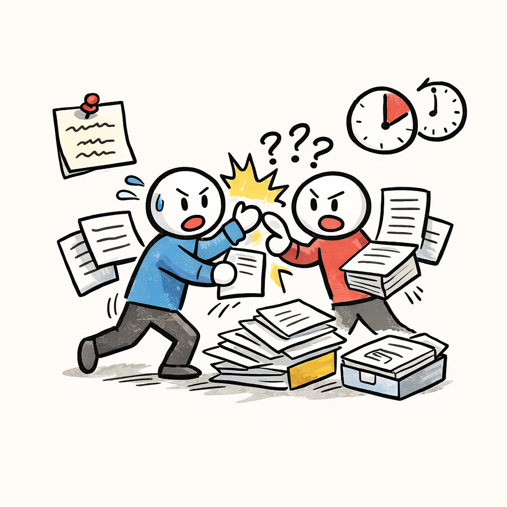 부서 간 역할과 책임이 명확하지 않아 업무가 중복되고, 승인 기준도 담당자마다 달라 결재 지연이 반복되었습니다. 시스템 개선도 시도했지만 기존 규칙과 절차가 명확하지 않아 오히려 혼란이 커졌습니다. 결국 문제는 기술이 아니라 구조적 설계의 부재였습니다.